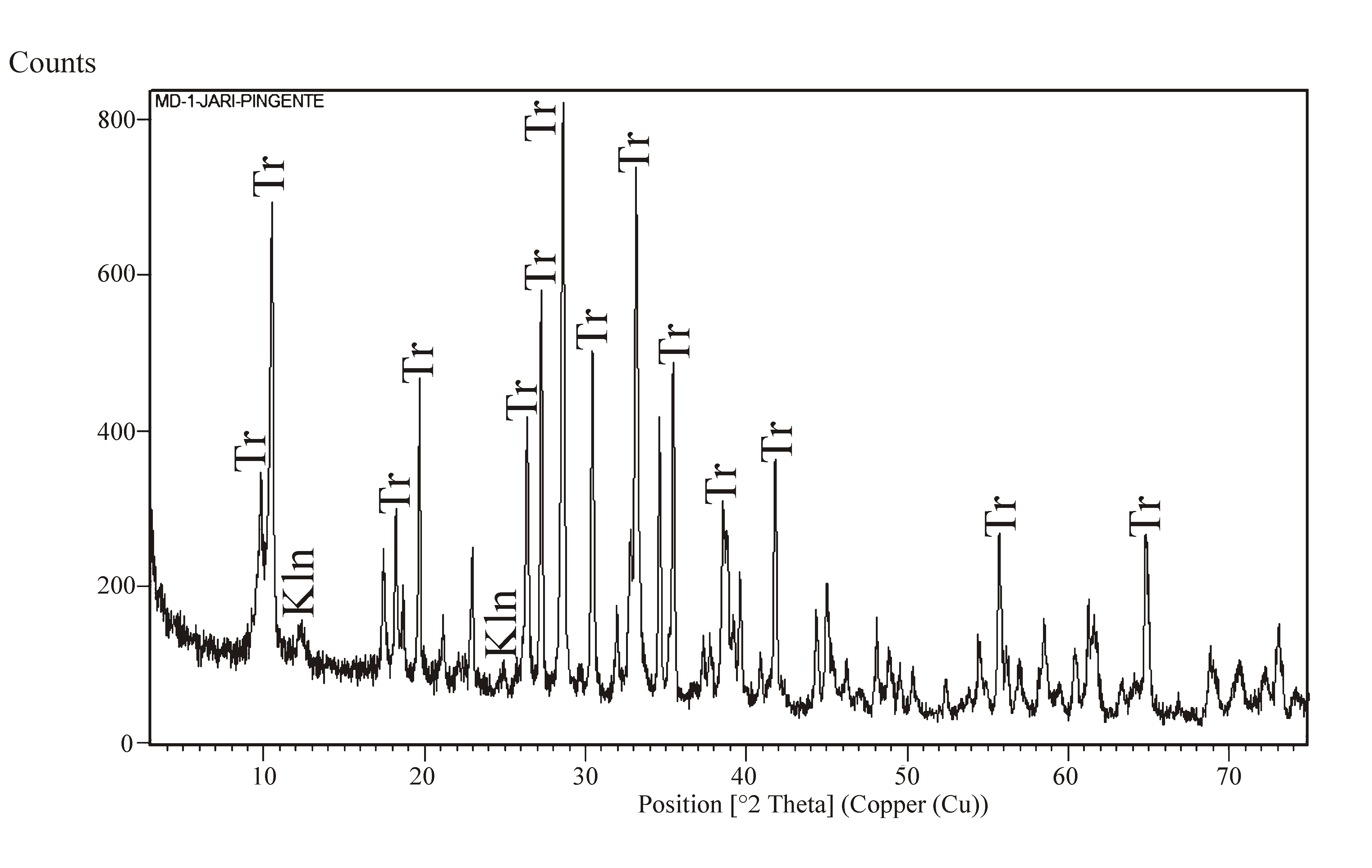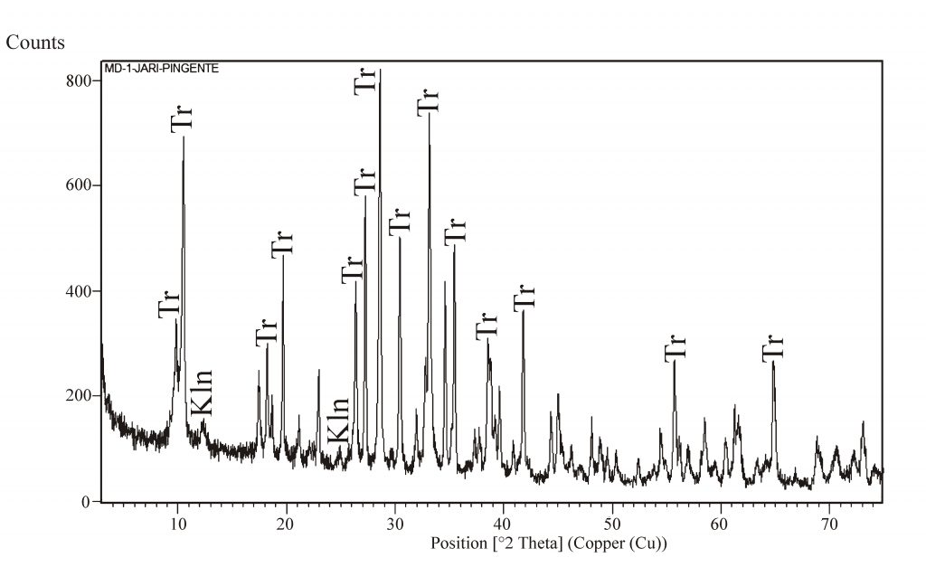 Figure 8 – XRD spectrum analysis carried out directly over the pendant (MD 1 SA3) surface showing the domain of tremolite (Tr), being kaolinite (Kln) restrict.