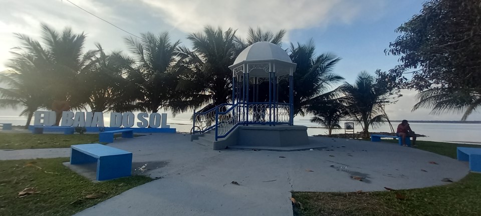 Mês de julho chegou, férias escolares se iniciaram, e Baía do Sol recebe visitas. Taparam os buracos da BL-13, a rodovia que liga Carananduba à Baía do Sol, concluíram a ampliação e restauro da Escola Municipal, limparam, pintaram e restauraram a praça do coreto em frente à escola. Ficaram simpáticos. Um mês atrás estavam muito feios, abandonados. Uma pena, pois se deterioram rapidamente. Aqui os perfis lateríticos, bonitos, foram tapados com uma muralha de concreto, para conter temporariamente a erosão. A imagem seguinte ilustra o coreto, que já recebeu em poucos anos inúmeras reformas e cores, agora está em branco e azul.